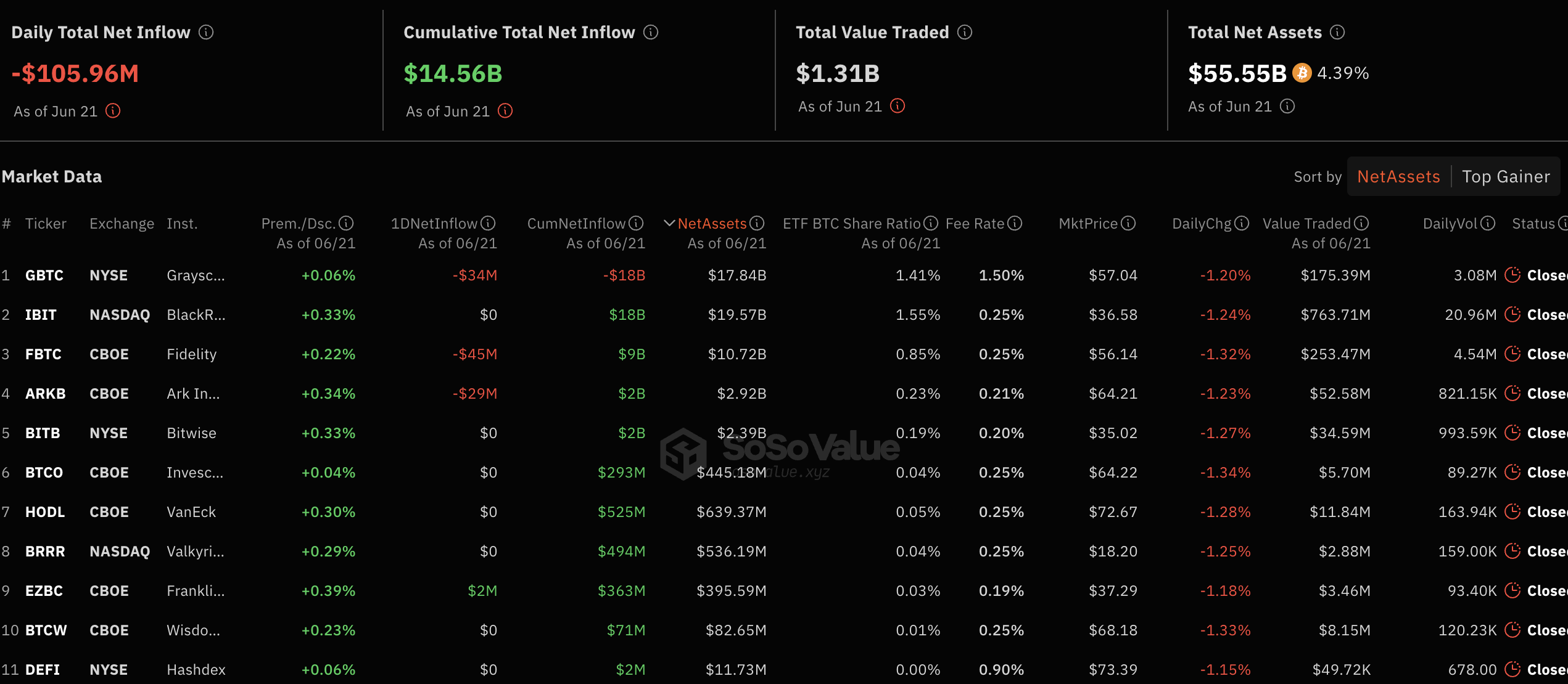 Bitcoin Spot ETF Overview (Source: SoSo Value)