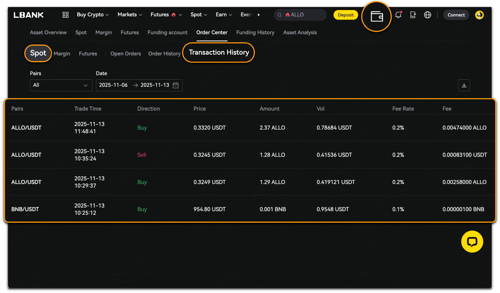 Para ayudarte a comprender mejor tu estado de trading y los movimientos de fondos, esta guía ofrece un recorrido paso a paso sobre cómo visualizar y gestionar órdenes de spot trading en LBank. Cubre los registros de spot trading, los detalles de las transacciones y cómo usar el Centro de Órdenes para filtrar y consultar información de manera eficiente.
