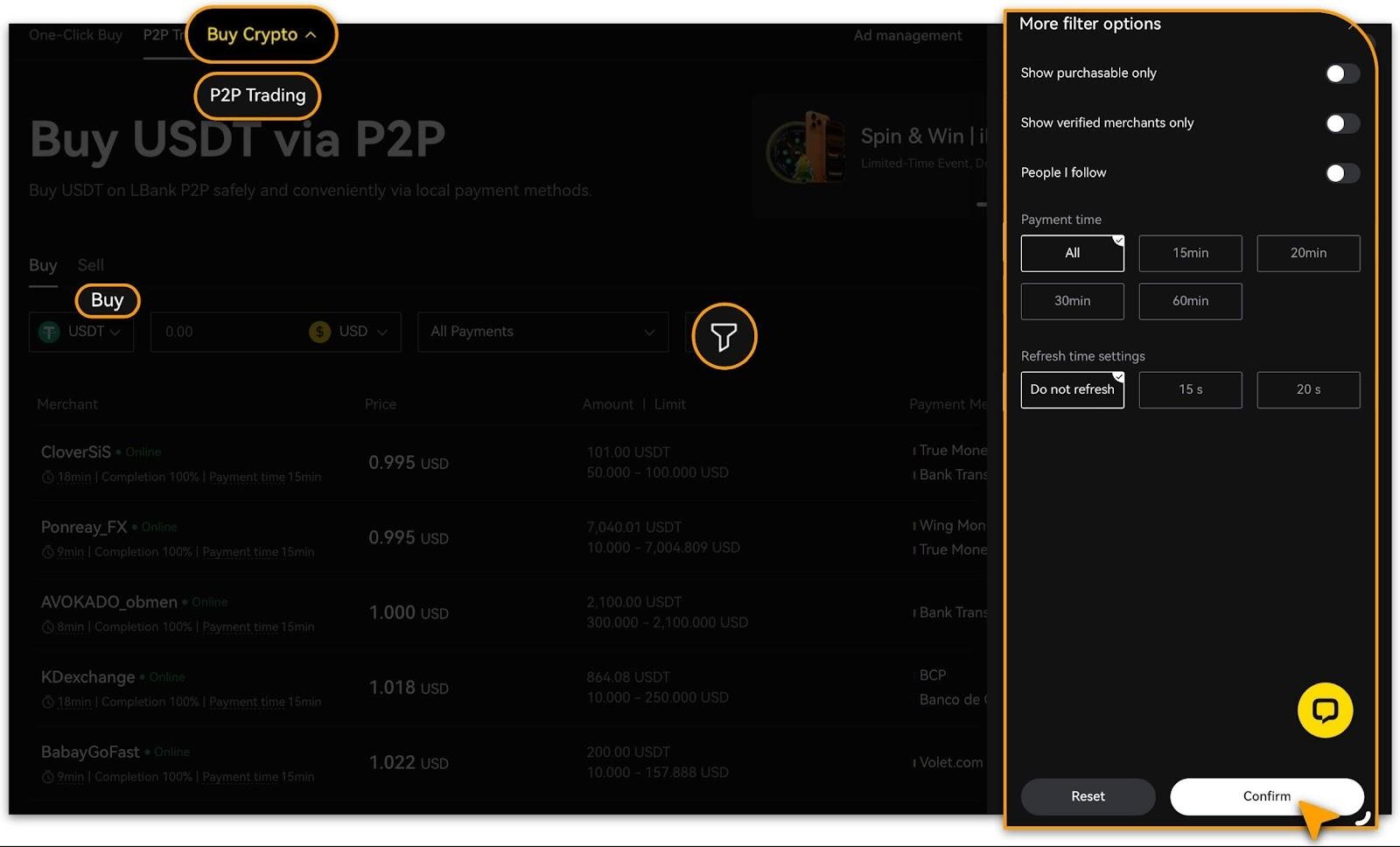 LBank P2P te permite hacer Trading directo de cripto usando moneda fiduciaria local. Define tu precio preferido, selecciona métodos de pago convenientes y completa transacciones seguras e instantáneas protegidas por el servicio de escrow de LBank.