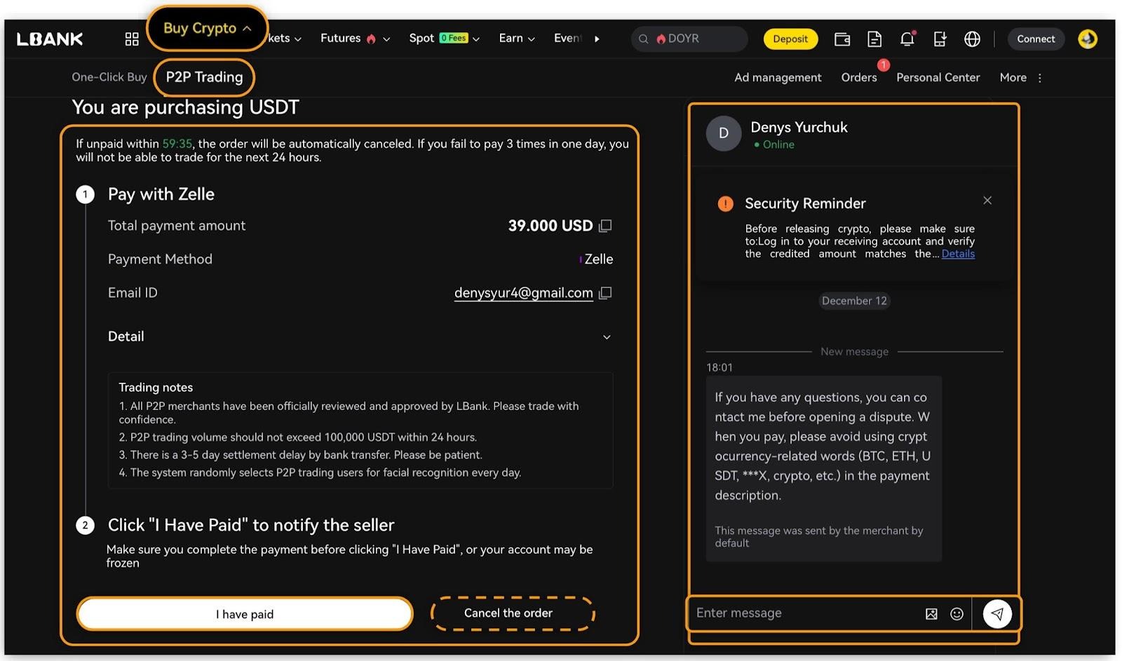 Completar una Compra P2P