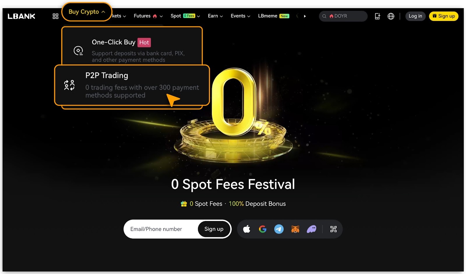 ۱. وارد وبسایت ال بانک شوید و به حساب کاربری خود وارد شوید، سپس روی «خرید رمزارز» > «معاملات P2P» کلیک کنید.