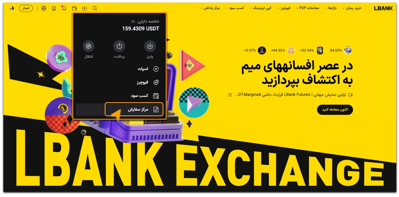 ۳. برای جزئیات بیشتر، به بخش [کیف پول] - [مرکز سفارشها] بروید: