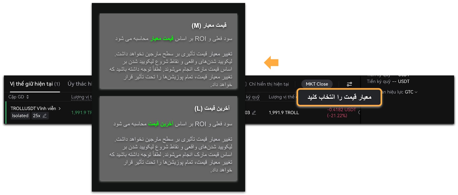 ۲. به صورت پیشفرض، این سود بر اساس آخرین قیمت نمایش داده میشود اما کاربران میتوانند بین قیمت مارک و آخرین قیمت جابهجا شوند.