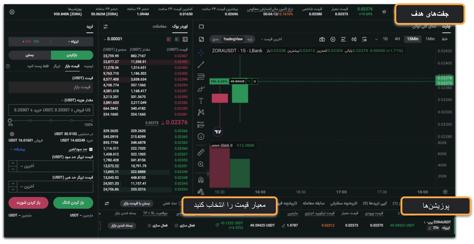 - درصد سود و زیان (PnL%) بازده سرمایهگذاری (ROI) پوزیشن را نشان میدهد.