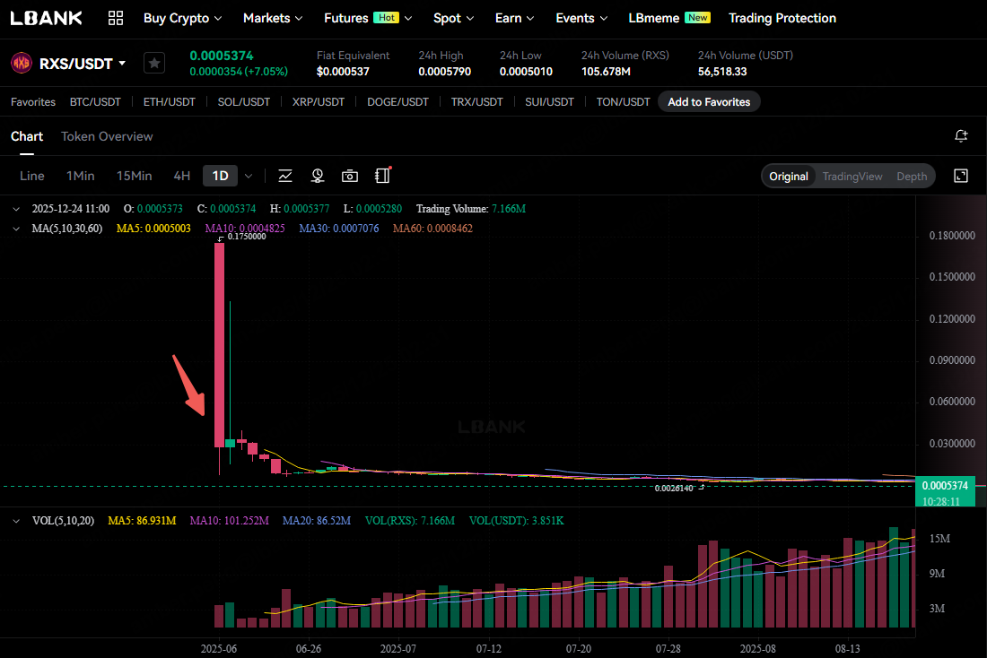 RXS/USDT spot price (1D) on LBank
