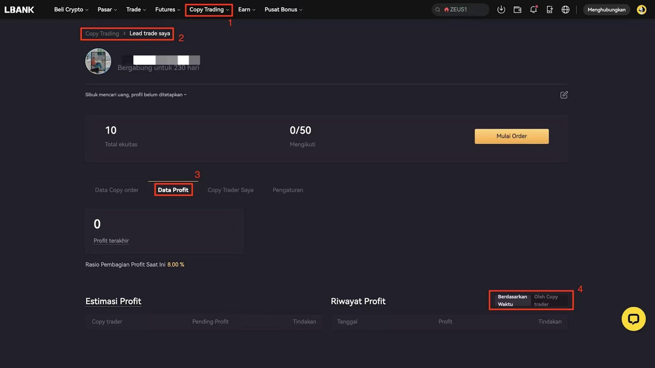 Kunjungi situs web LBank, buka halaman Copy Trading, lalu klik Lead Trade Saya.