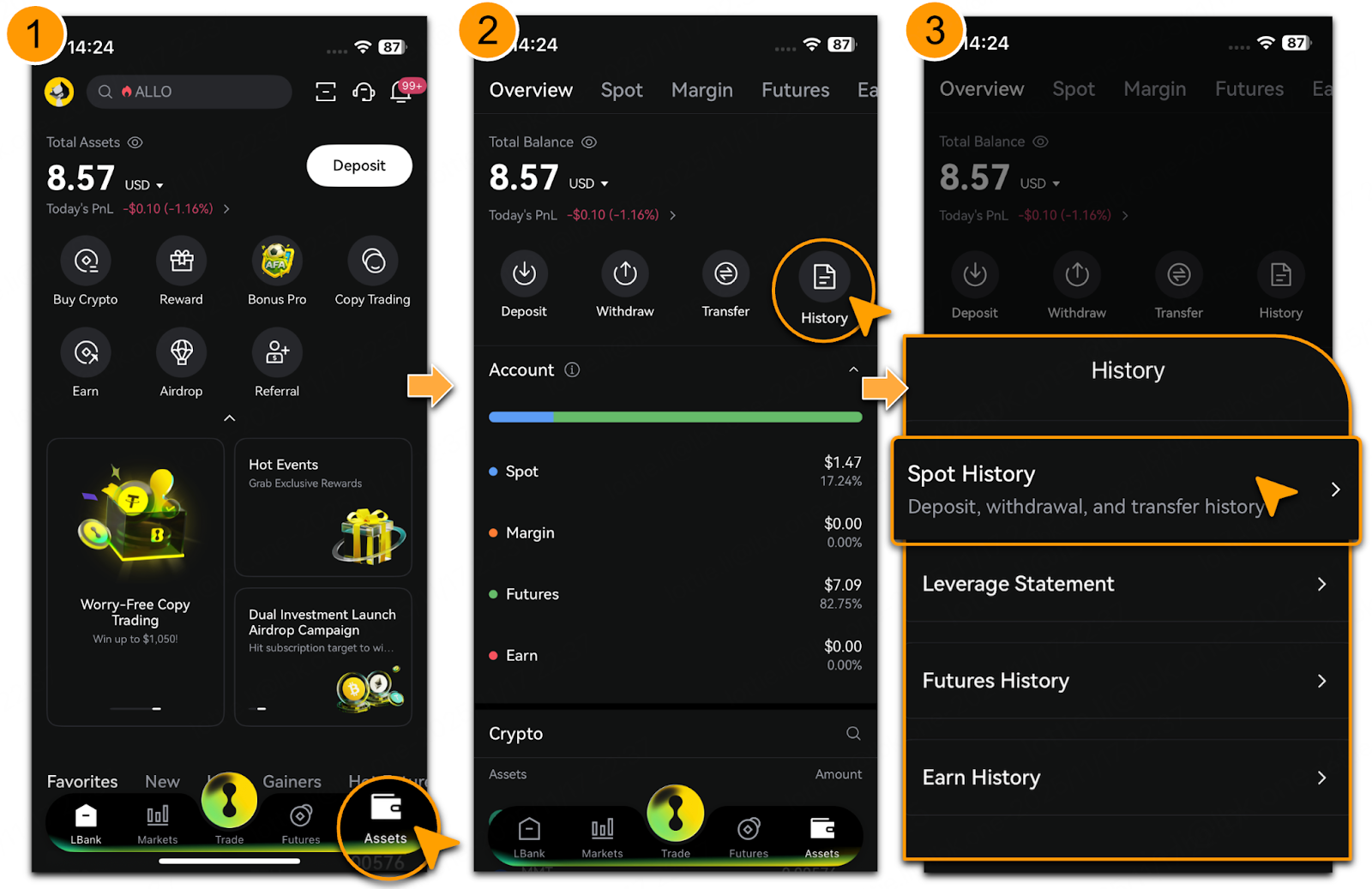 Aby pomóc ci lepiej zrozumieć przepływy środków oraz aktywność związaną z wpłatami i wypłatami, ten przewodnik przedstawia krok po kroku, jak przeglądać i zarządzać zapisami historii spot na LBank. Obejmuje historię wpłat i wypłat, szczegóły transakcji oraz sposób korzystania z tej funkcji do efektywnego filtrowania i wyszukiwania informacji.
