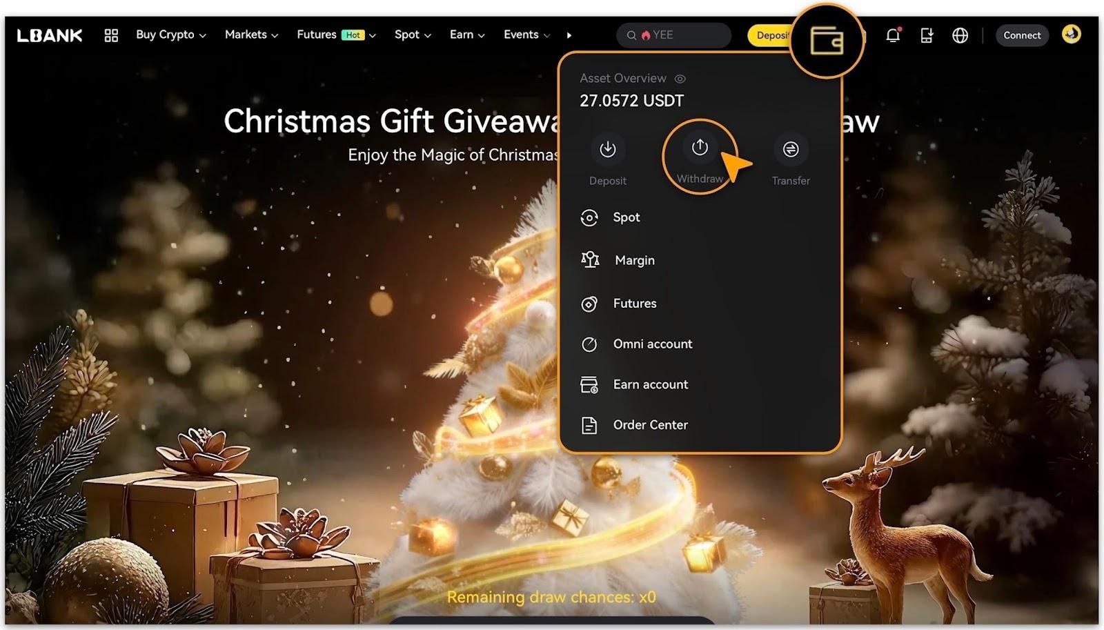 Faça login no App da LBank e vá em 「Ativos > Sacar」;