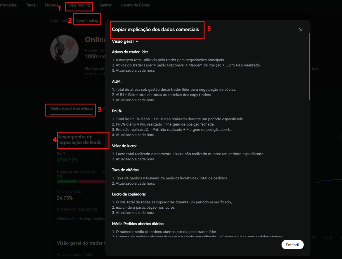 Ⅰ. Acesse a página de Detalhes do Lead Trader para visualizar os dados de trading