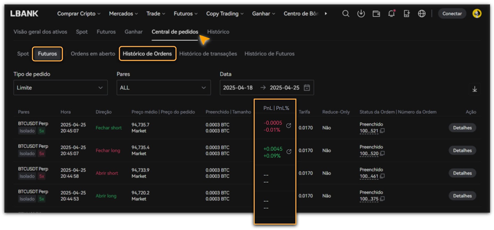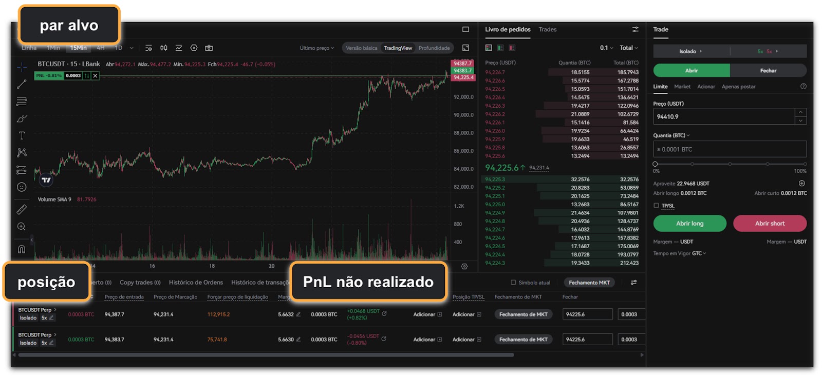 - O cálculo do PnL não realizado não inclui taxas de trading, taxas de fechamento ou taxas de financiamento.