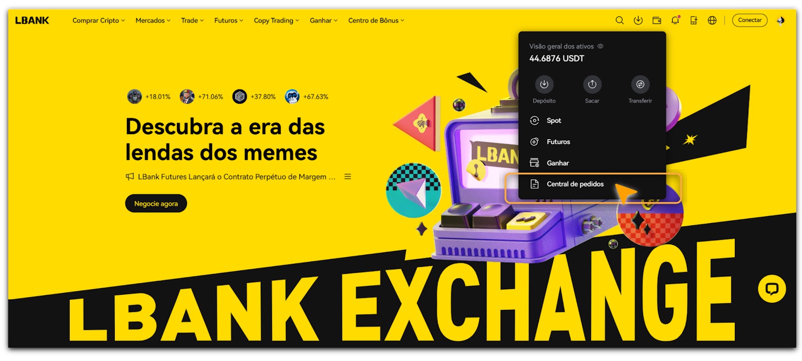 - Para ver os detalhes das transações, vá para [Carteira] - [Central de Pedidos]