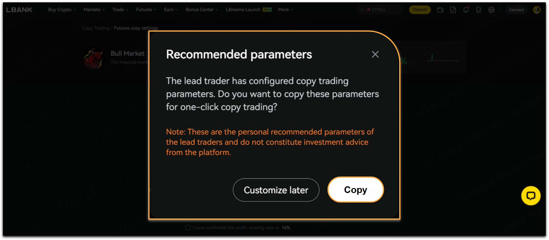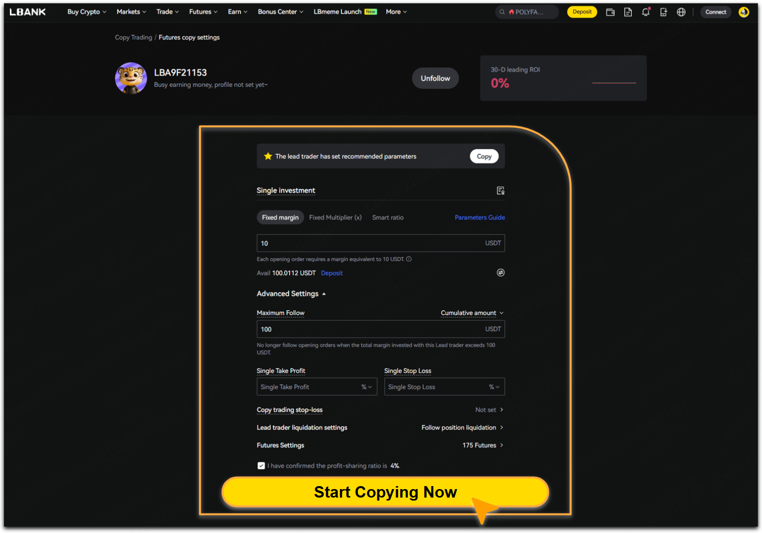 📌 For parameter details, see 「LBank Copy Trading Guide: Optimized Settings and Tips」.