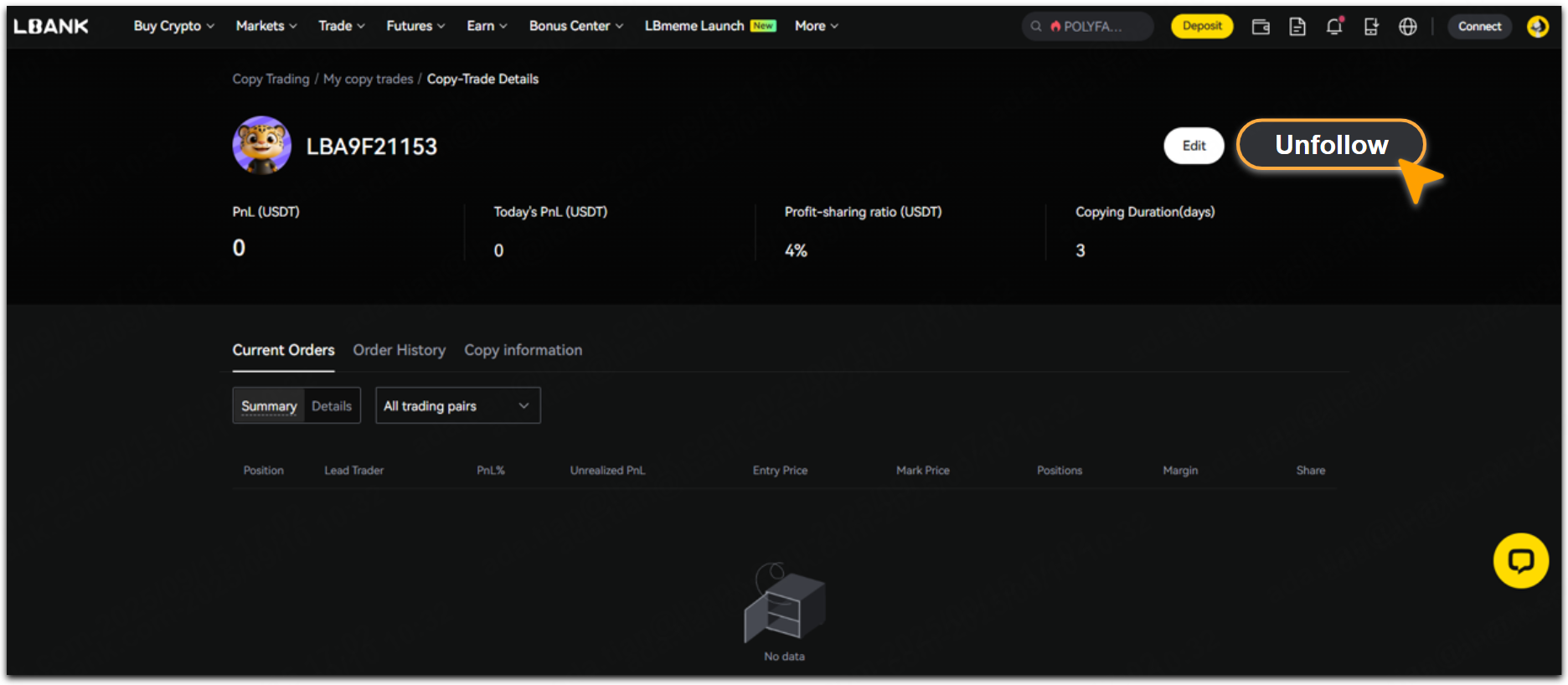 📌For more details, see 「LBank Copy Trading: How to Close a Copy Trading Position」.