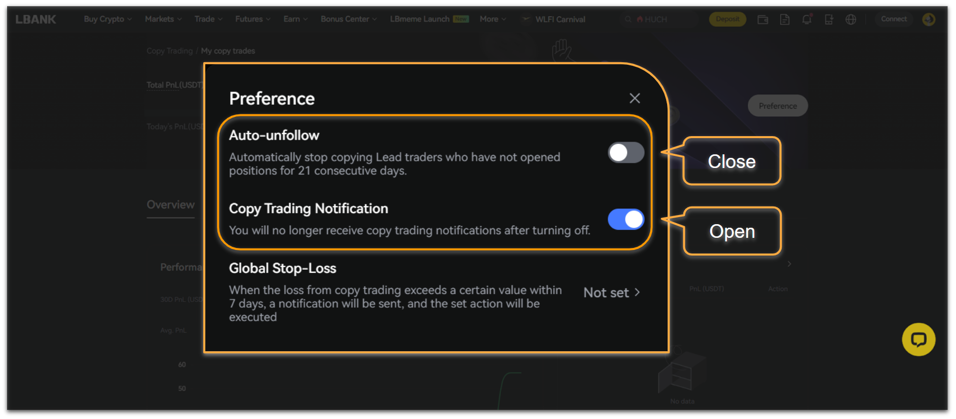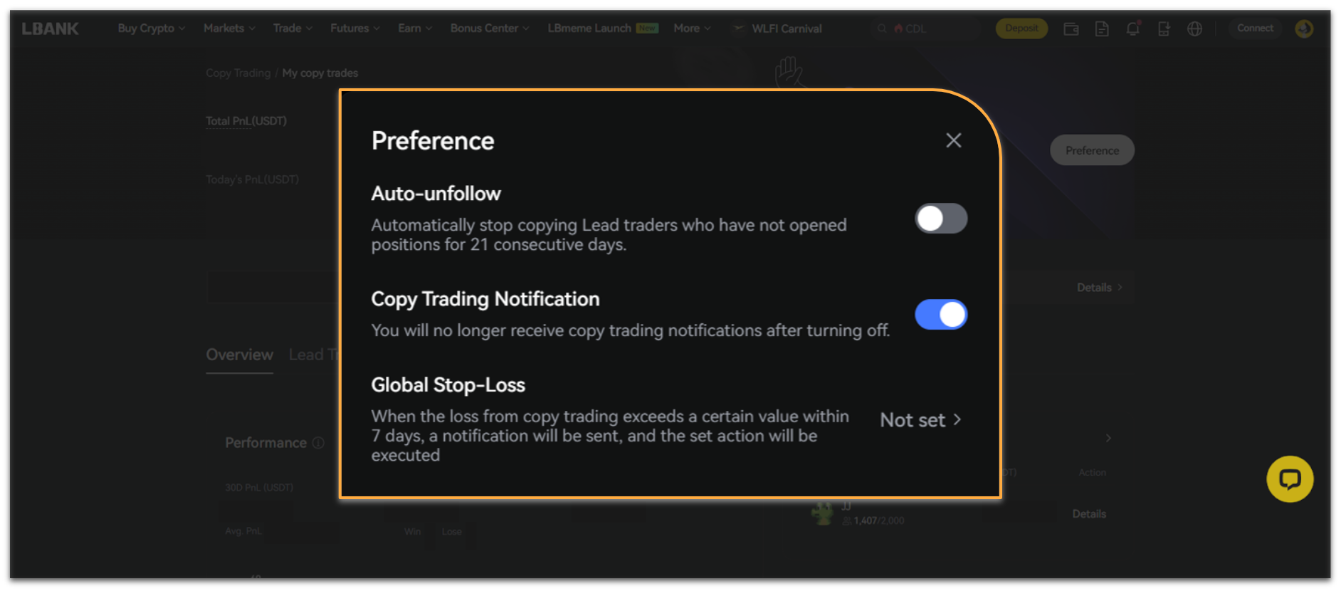 📌 For details, please refer to 「LBank Copy Trading Guide: Optimized Settings and Tips」.