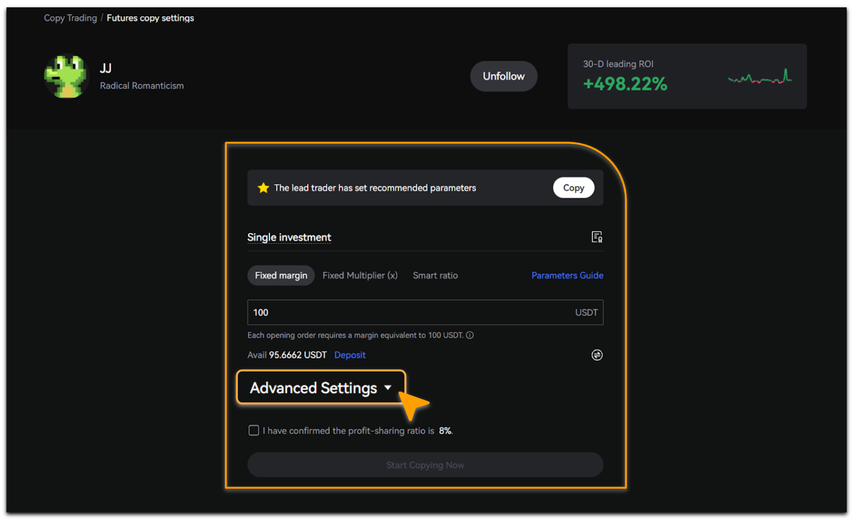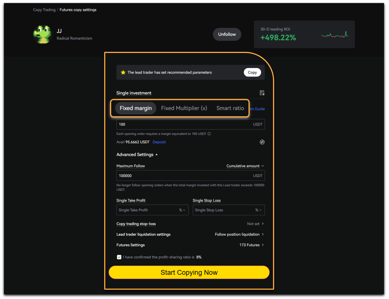 After completing the setup, check [I have confirmed the profit-sharing ratio is X%], then tap [Start Copying Now].