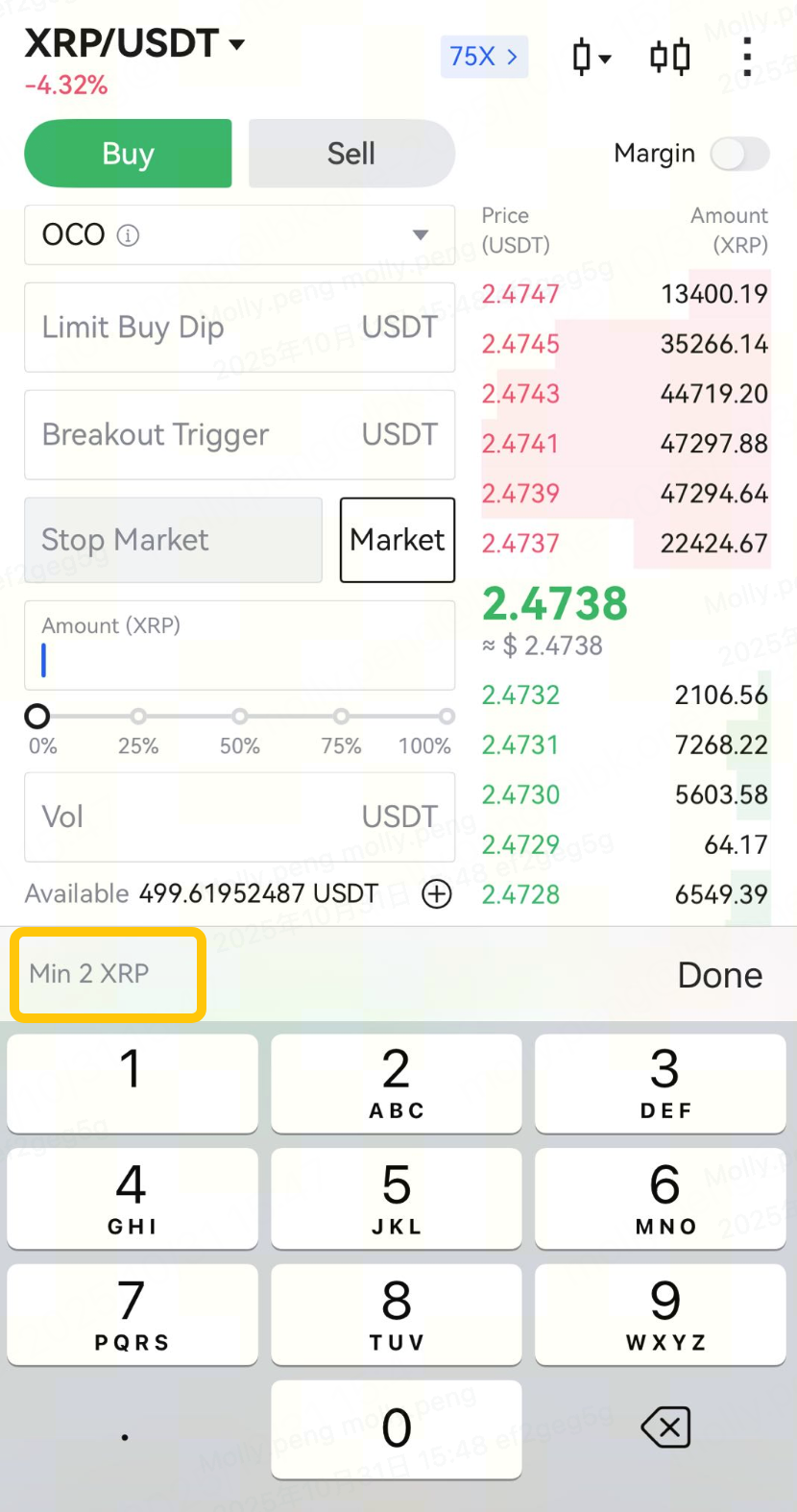 Khi đặt lệnh bằng chế độ số lượng hoặc chế độ giá trị danh nghĩa, hệ thống hiện đảm bảo việc đặt lệnh thành công khi thanh trượt được đặt ở mức tối đa, bất kể sự biến động số dư hay biến động giá thị trường.