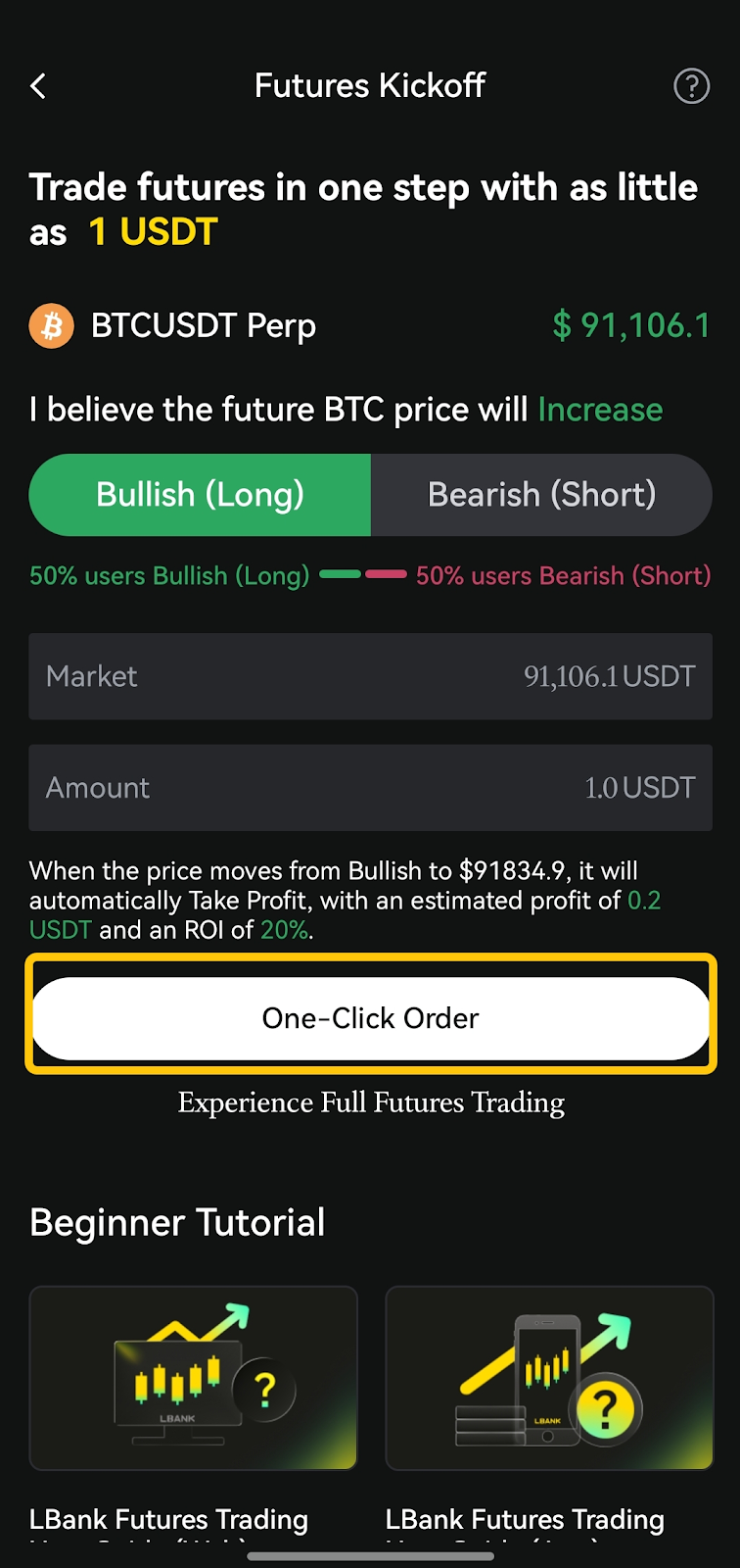 Một mô-đun Futures Kickoff mới đã được thêm vào trang giao dịch Futures, hỗ trợ mở vị thế chỉ với một cú nhấp chuột, giúp người dùng mới bắt đầu dễ dàng hơn.