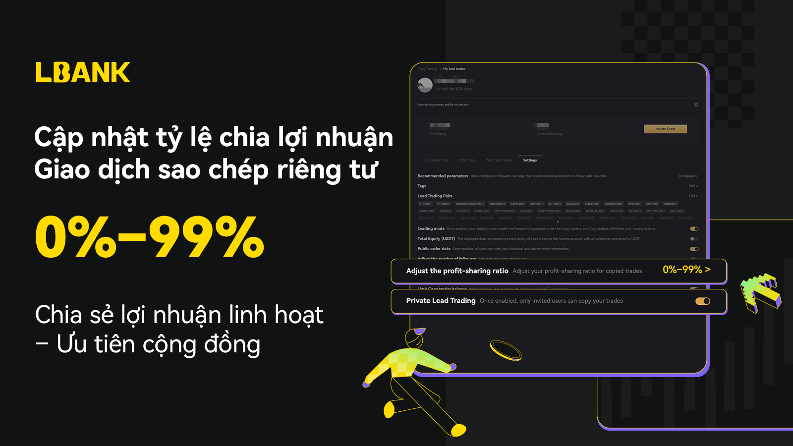 Giao dịch sao chép riêng tư cho phép các nhà giao dịch dẫn đầu chia sẻ giao dịch của họ một cách riêng tư và chỉ cho phép người dùng được mời sao chép giao dịch. Nhà giao dịch dẫn đầu có thể ẩn hồ sơ nhà giao dịch chính của họ, cài đặt cấu hình các liên kết lời mời duy nhất và quản lý các nhà giao dịch sao chép.