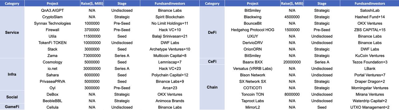 上週共發生了 32 起融資活動,募集了超過 1.852 億美元的巨額資金。與上週相比,融資活動在交易量和總募資額方面仍保持活躍。區塊鏈服務領域以最多的融資活動數量領先,共有六起,同時也錄得了最高的總募資額,共募集了 1.022 億美元,占總募資額的 55%。最大的一筆融資活動由 Zama 領銜,成功募集了 7300 萬美元。Zama 是一家致力於為開發者開發開源同態加密工具的密碼學公司。下面提供了更詳細的信息。