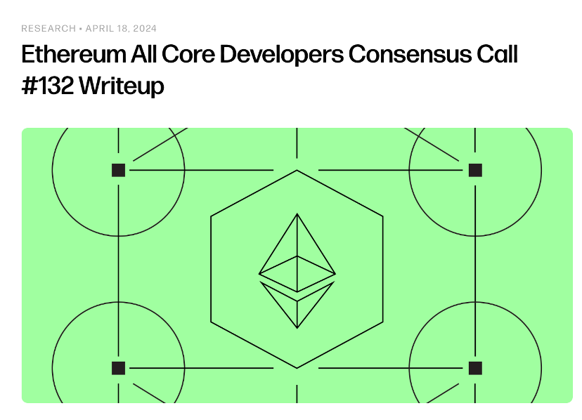 [以太坊]以太坊所有核心開發者共識電話#132報導。根據Christine Kim對第132屆以太坊共識層核心開發者大會(ACDC)的總結,會議主要討論了以下內容:Pectra Devnet 0的準備進度(初始CL規範和測試向量已經發布,以及一些關於EIP-7251相關主題、將驗證器合併定義為CL操作或EL操作等問題的討論;刪除EIP-7549中的委員會索引后的兼容性問題;建議增加斑點數量)。關於研究方向的討論:以太坊發行策略變化的新模型,以及與證明子網相關的問題(引入網絡分片的概念,將節點ID標記為數字/網絡分片。然後,使用該網絡分片/ID來分配節點必須長期訂閱的主題,與數據可用性採樣和PeerDAS方案相關)。