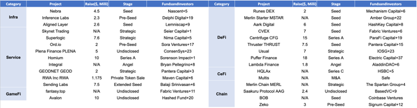 上周共舉辦了29場融資活動,籌集了超過1.244億美元*的巨額資金。與最近幾周相比,融資活動在交易量和融資總額方面都保持活躍。DeFi部門的融資事件數量最多,共計8起。DeFi部門也創下了最高的融資總額,共籌集了6430萬美元,佔總融資的52%。最大的融資活動由Puffer Finance牽頭,成功籌集了1800萬美元。Puffer Finance是一個由EigenLayer增強的以太坊流動性質押。下面提供了更詳細的信息。