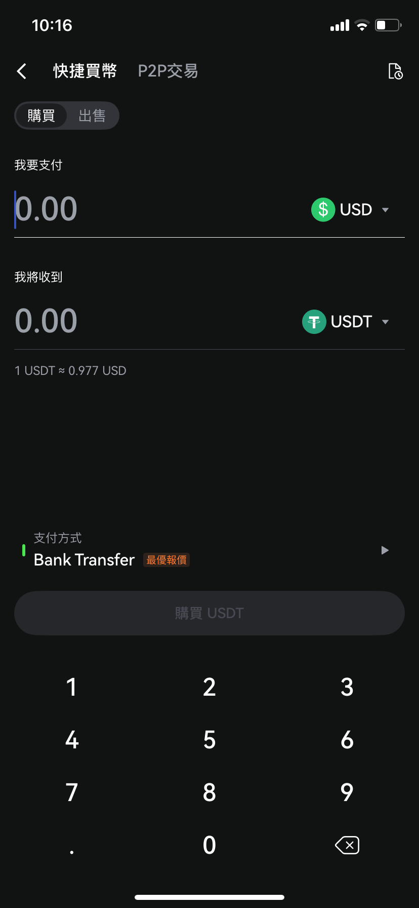 在「快捷買幣」標籤上:
