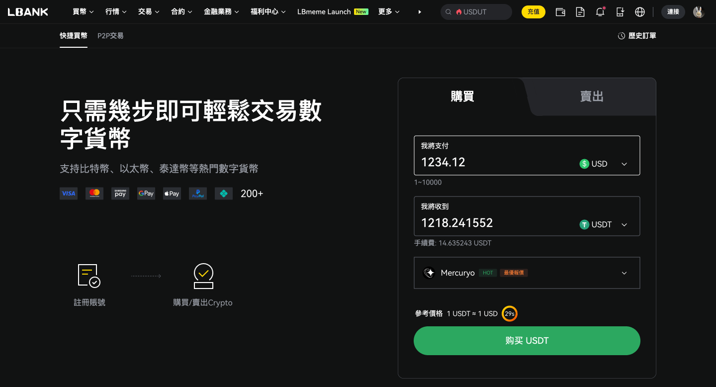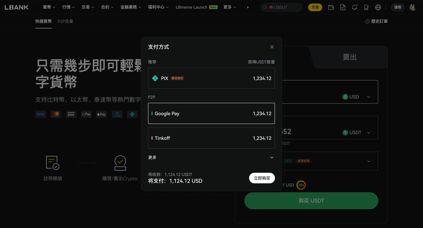LBank 支援多種付款方式