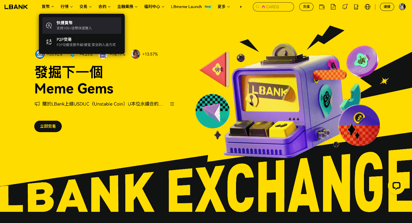 在您的桌面瀏覽器上登入 LBank,然後點擊「快捷買幣」選項。