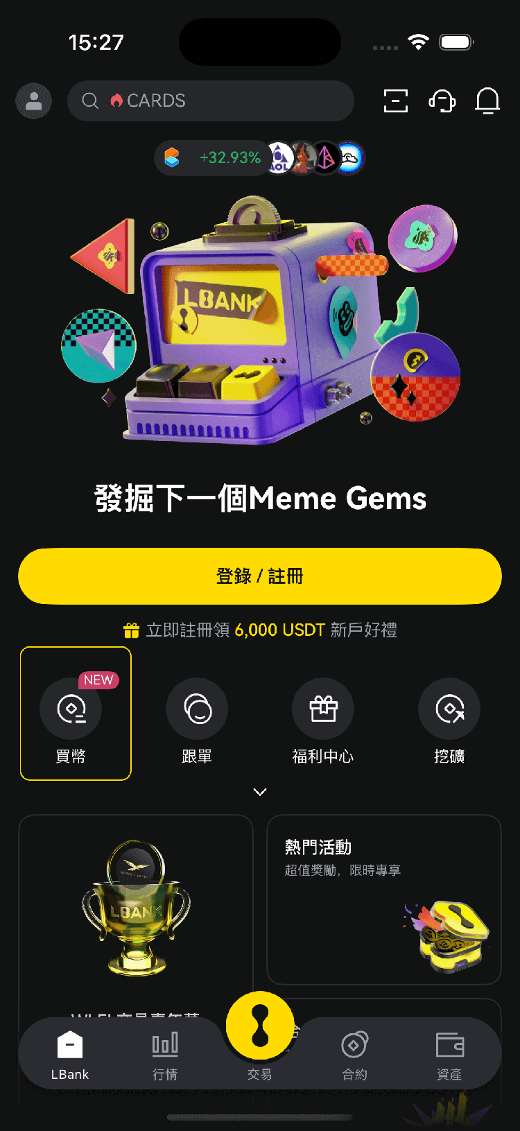 打開 LBank 手機應用程式,然後點擊「買幣」