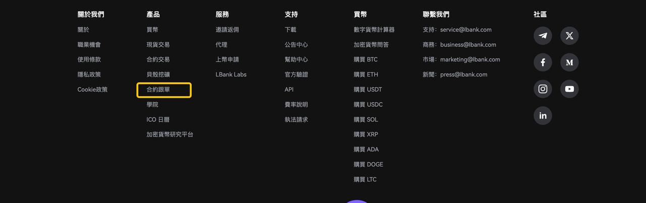Web頁腳新增合約跟單入口