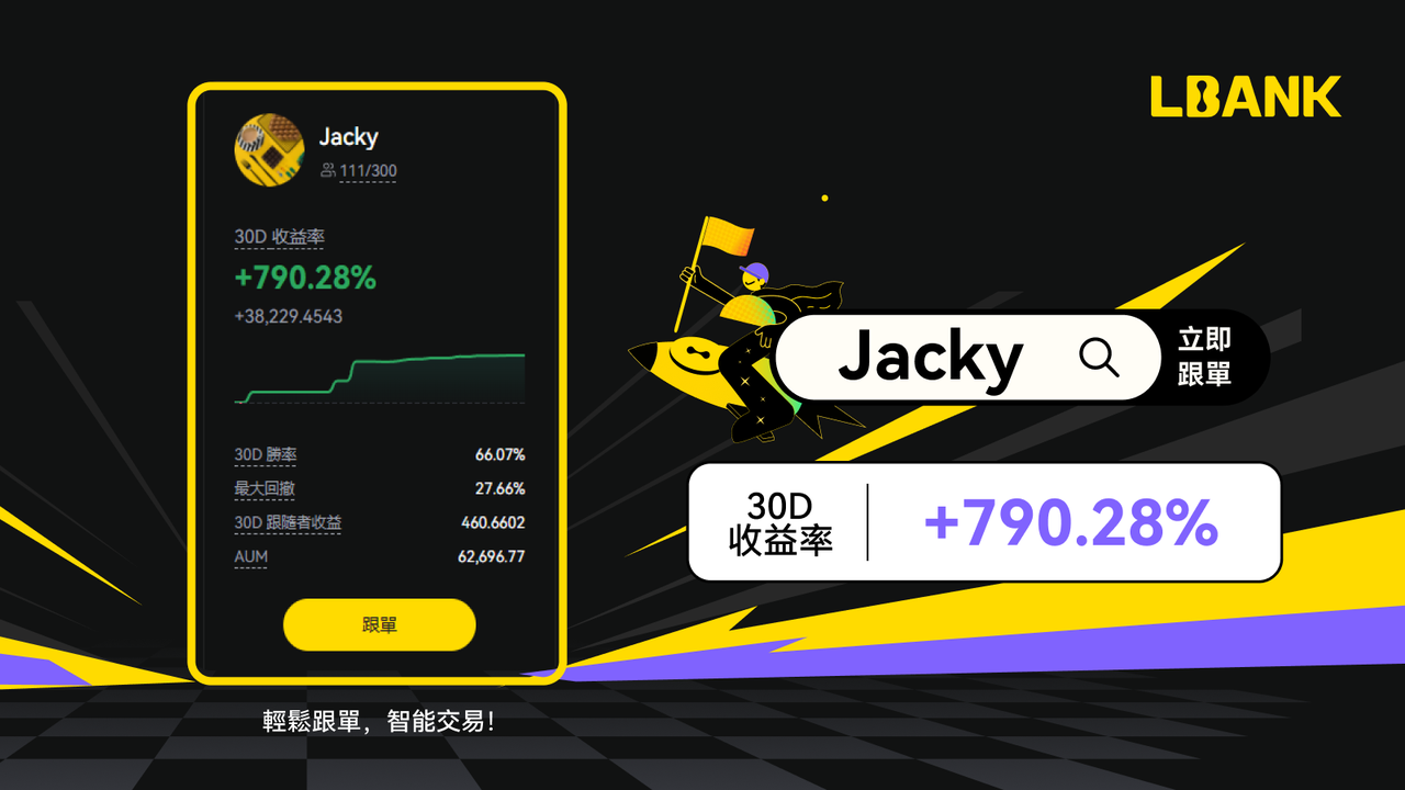 1.1 本周明星帶單員:【Jacky】以30D 收益率 +790.28% 成為本周明星帶單員,輕鬆跟單,智能交易,快來開始你的跟單之旅吧!