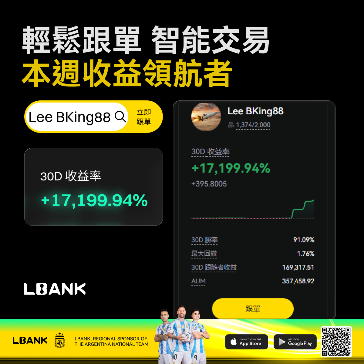 3.1 本周明星帶單員:【Lee BKing88】以30D 收益率 +17,199.94% 成為本周明星帶單員,輕鬆跟單,智能交易,快來開始你的跟單之旅吧!