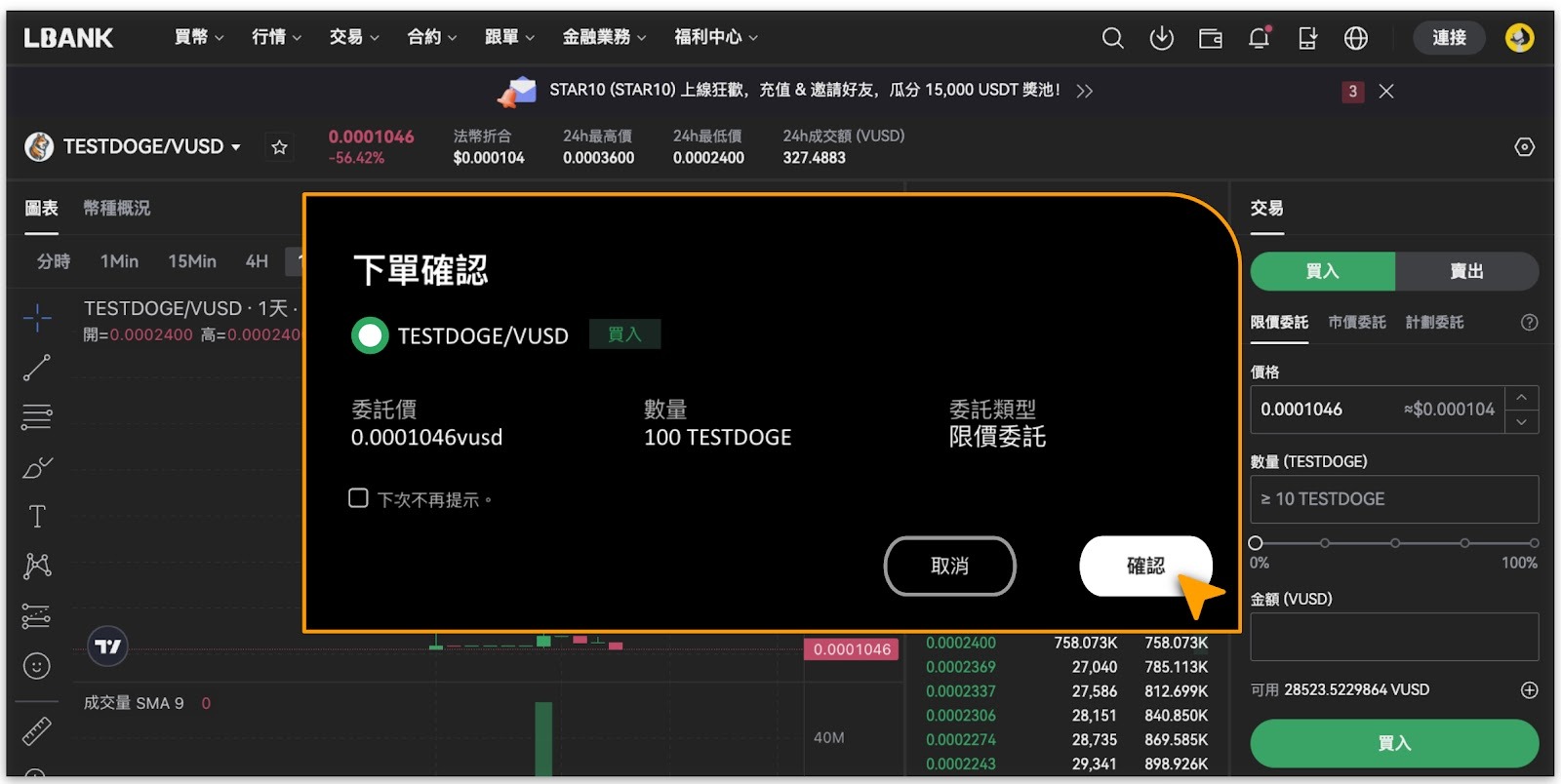 確認無誤後,請點擊「確認」完成買入操作。如需改動,可點擊「取消」並返回修改。