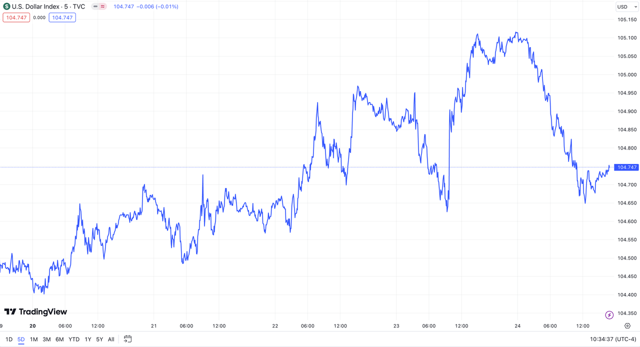 Last week, the US Dollar Index (DXY) showed a volatile upward trend, closing at 104.747 on Friday, higher than the previous week's 104.497.