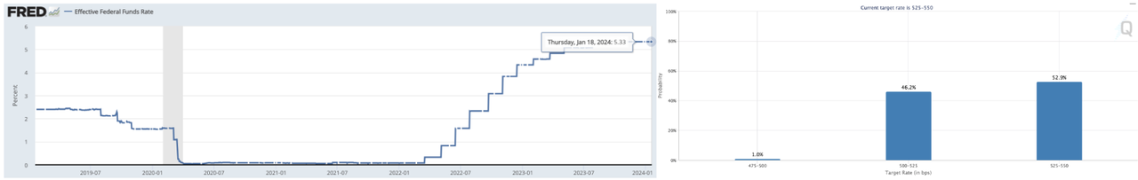 Left: EFFR, Right: Target Rate Probabilities for March 2024 Fed Meeting