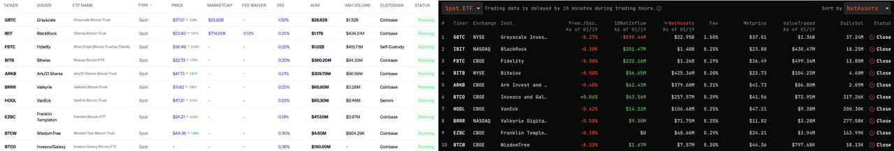 Left: Bitcoin Spot ETF Overview, Right: Daily Trading Activity of Bitcoin Spot ETF