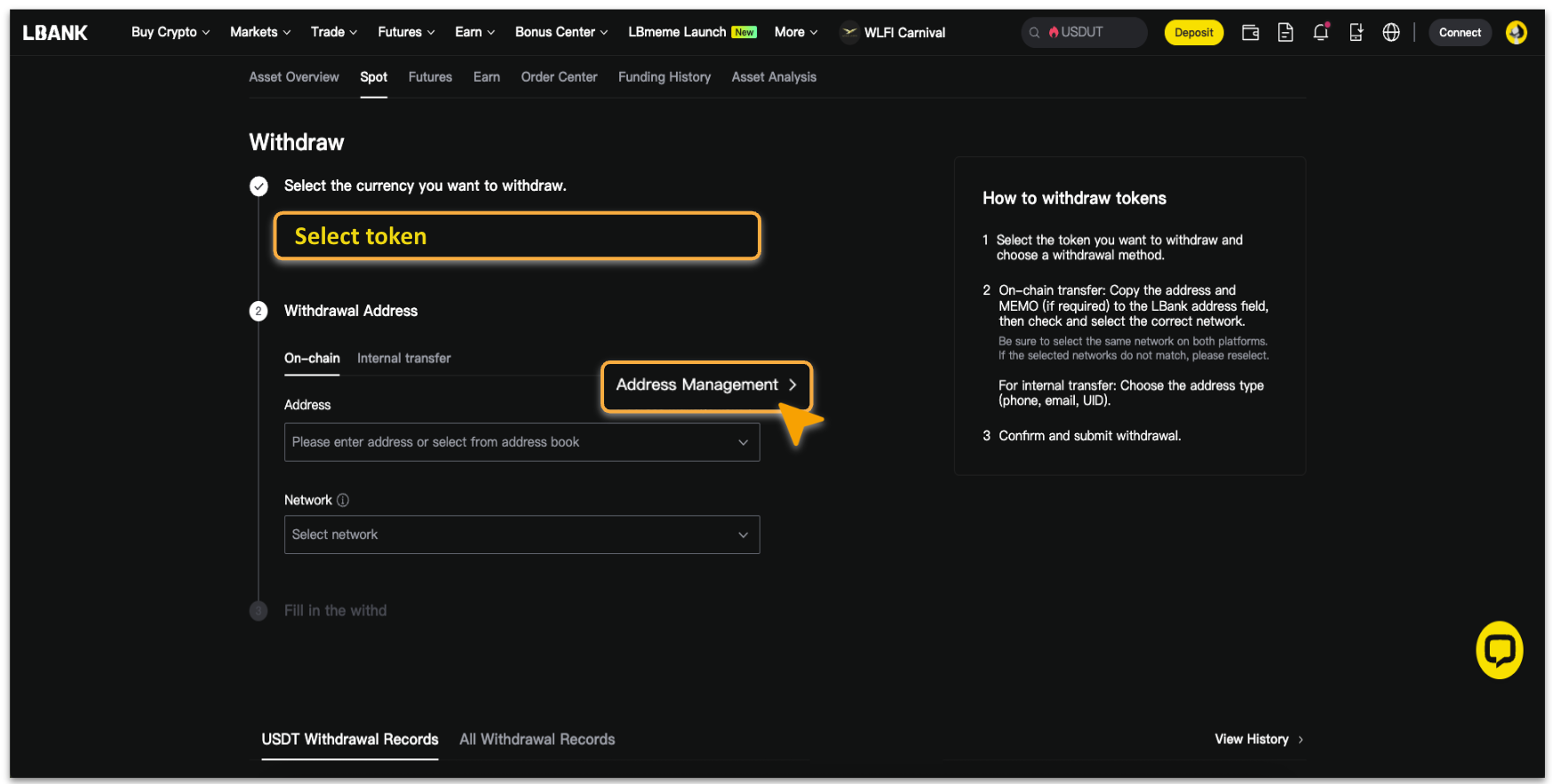 Tap [Add Address], choose [On-Chain Withdrawal] or [Internal Transfer].