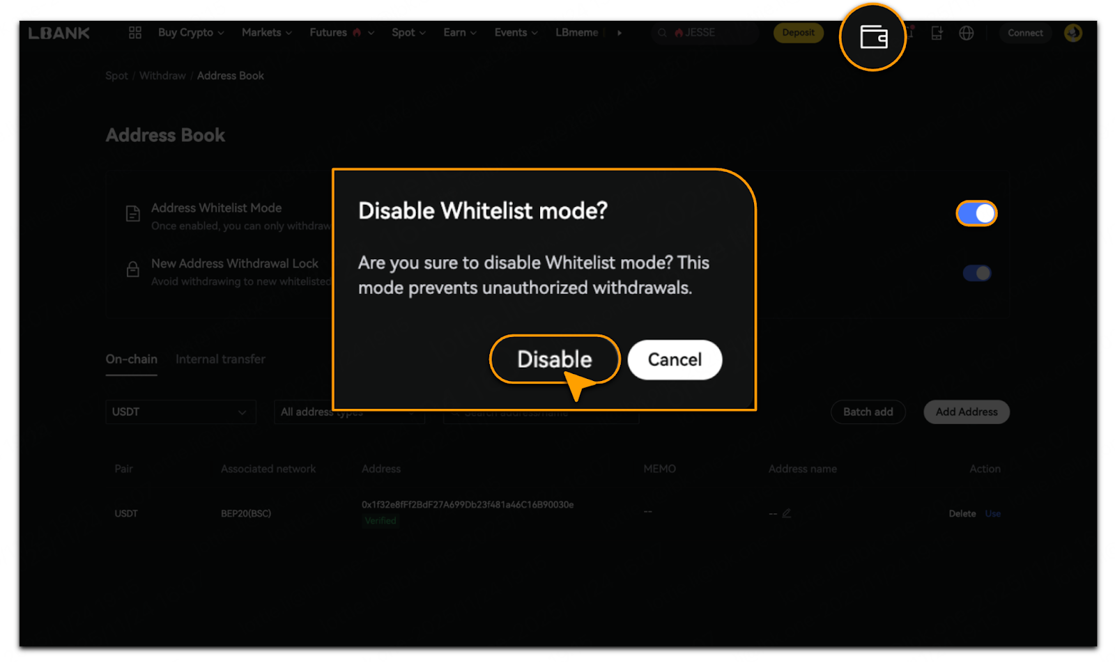 Withdrawal Whitelist Check: Once the withdrawal whitelist is enabled, withdrawals can only be made to addresses in your address book. Please add frequently used addresses.
