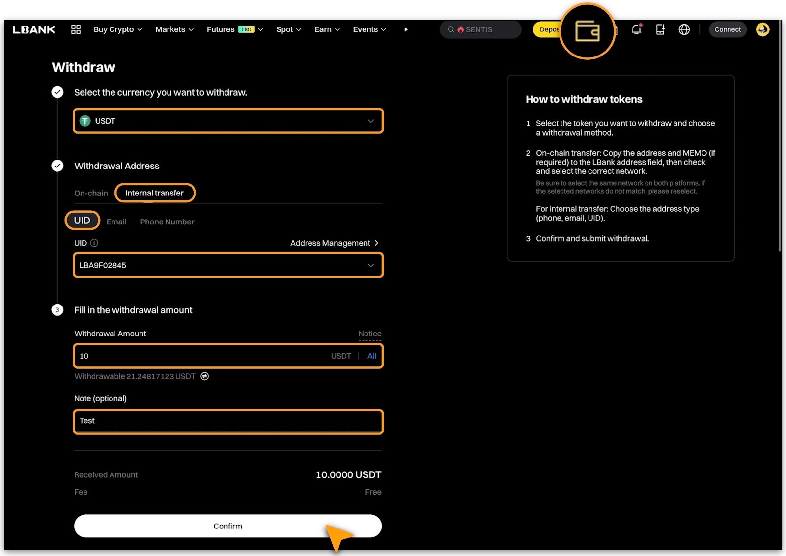 Confirm the Withdrawal Order