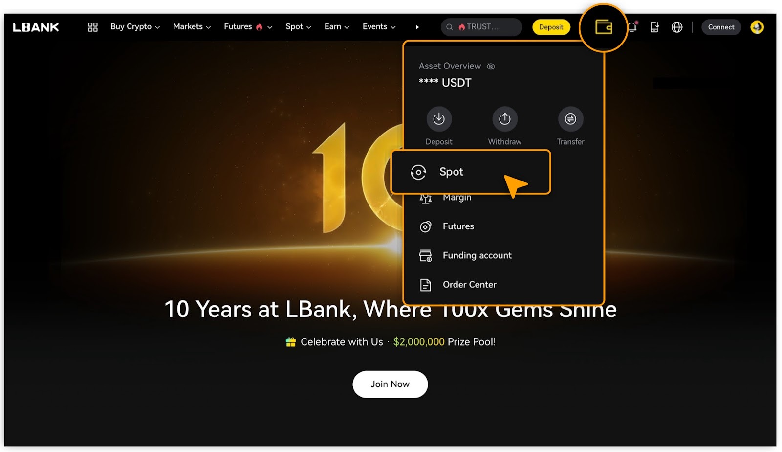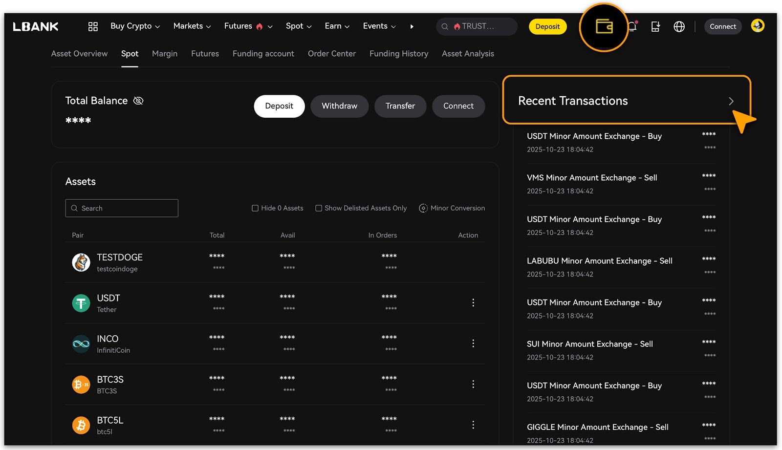 Access「Wallet > Spot」