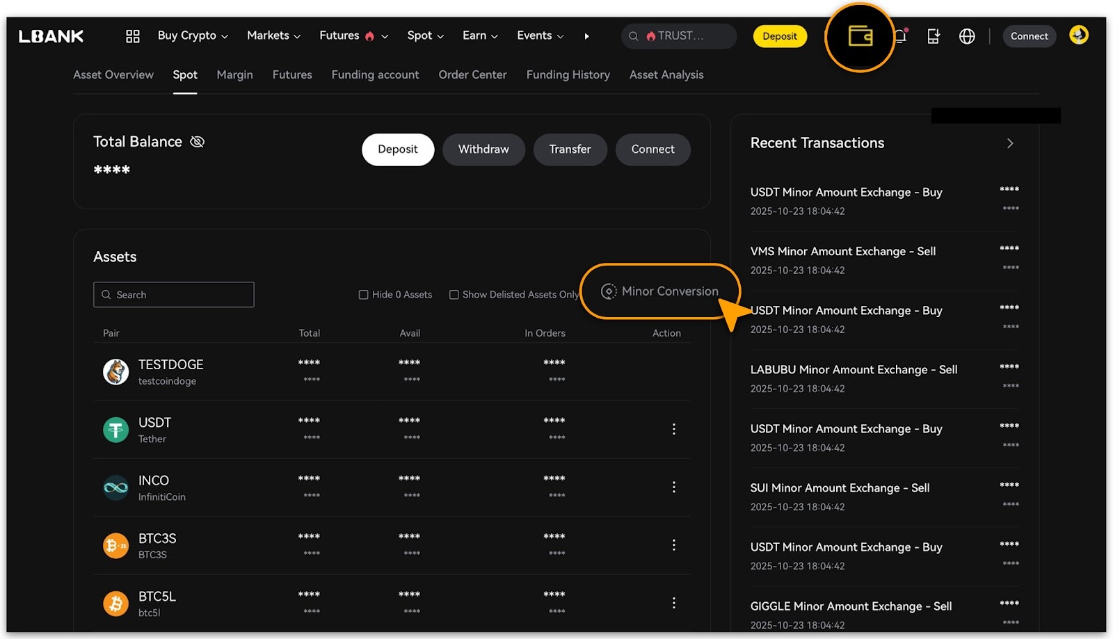 The Minor Conversion feature enables instant, fee-free conversion of any supported cryptocurrency in your spot account to USDT, with real-time pricing updated every 5 seconds for optimal execution. This guide provides step-by-step instructions for Web and Mobile App.