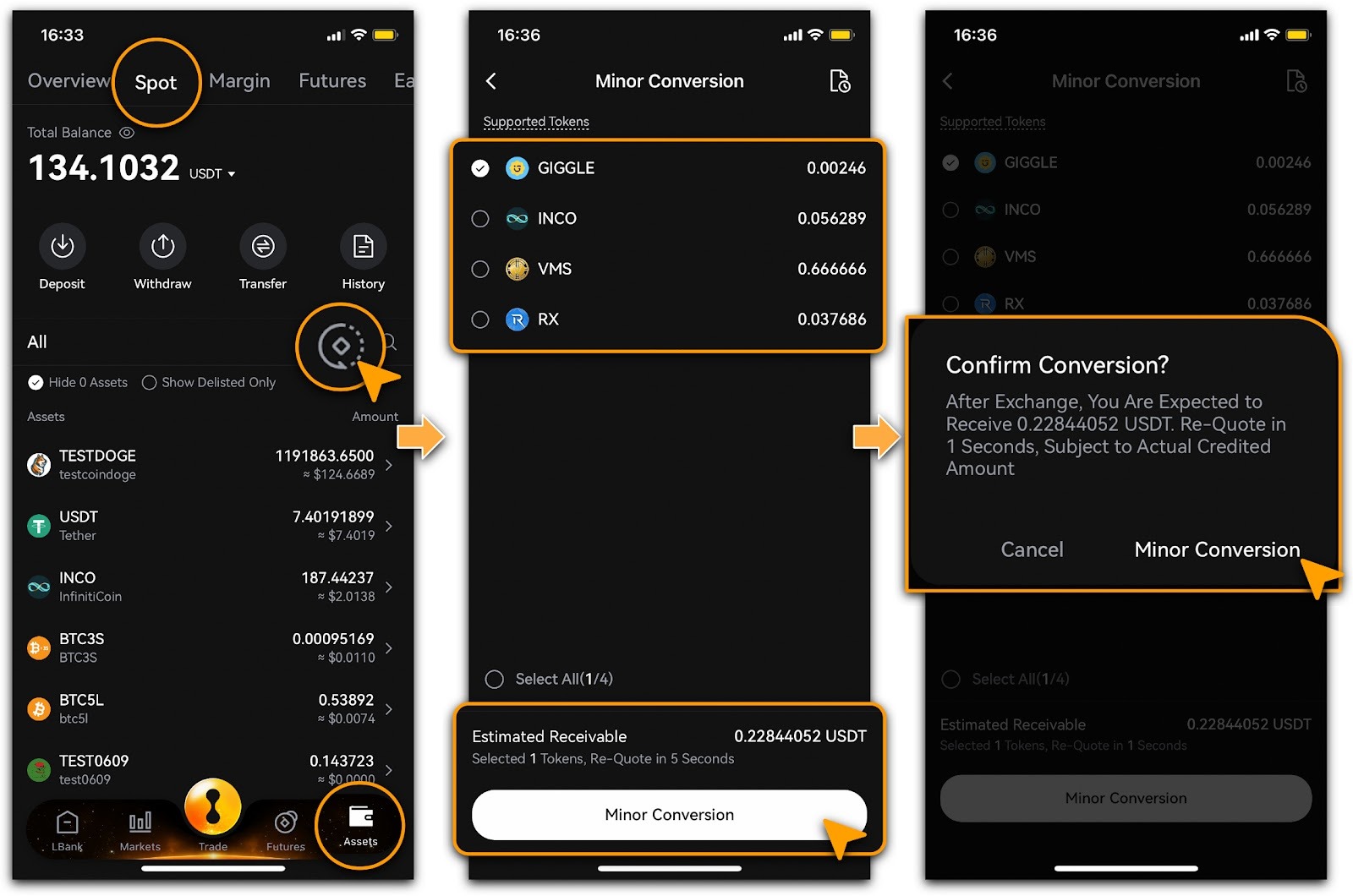 Go to「Spot Account」, tap「Minor Conversion」.